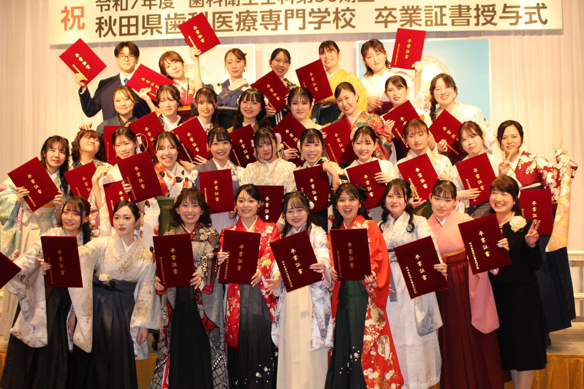 令和7年度 秋田県歯科医療専門学校歯科衛生士科 第56期生 卒業証書授与式が執り行われました。